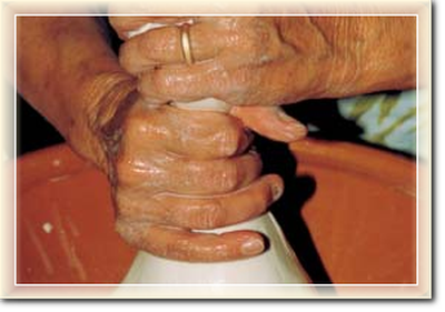 -Impasto con morchia di olio di oliva: l’argilla in polvere viene mescolata con morchia di olio d’oliva e spalmata sulla forma. In questo modo l’impasto argilloso restando morbido non è soggetto a spaccature.
