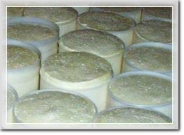 Tale argilla, di cui si allega un’analisi, è presumibilmente un caolino ed è normalmente impegnata nella produzione di ceramiche. Essa è preparata e cosparsa sulle forme secondo tecniche diverse di seguito riportate, ma comunque dopo un periodo di maturazione del formaggio di almeno tre mesi. Impasto con acqua: l’argilla in polvere viene mescolata con acqua, lasciata riposare per alcune ore e quindi spalmata su tutta la forma. Gli impasti argillosi realizzati con questa tecnica, essiccandosi, tendono gradualmente a spaccarsi rendendo necessario la ripetizione delle operazioni di copertura delle forme per una o due volte, fino ad arrivare ad uno spessore di argilla di 4-5 mm.