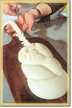 Preparazione. La cagliata acidificata viene tagliata in pezzi; questi vengono immersi in una pentola d'acqua alla temperatura di 80 - 90°C e modellati con le mani fino ad ottenere una forma a pera, e a garantire lo spurgo dal siero residuo.